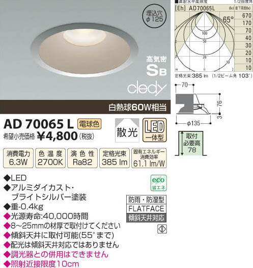 ¥³¥¤¥º¥ß¾ÈÌÀ KOIZUMI LED¹âµ¤Ì©¥À¥¦¥ó¥é¥¤¥È AD70065L