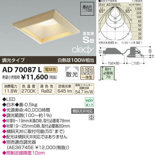¥³¥¤¥º¥ß¾ÈÌÀ KOIZUMI LED¹âµ¤Ì©¥À¥¦¥ó¥é¥¤¥È AD70087L
