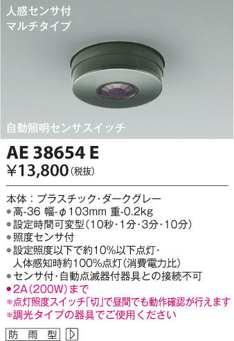 KOIZUMI ¥³¥¤¥º¥ß¾ÈÌÀ ¼«Æ°¾ÈÌÀ¥»¥ó¥µ¥¹¥¤¥Ã¥Á AE38654E
