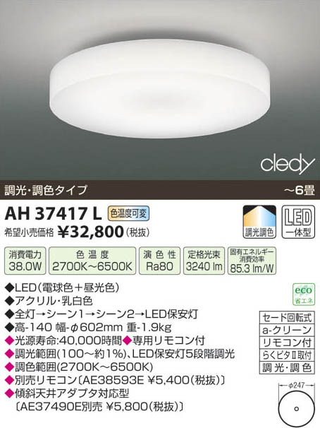 ¥³¥¤¥º¥ß¾ÈÌÀ KOIZUMI LED¥·¡¼¥ê¥ó¥° AH37417L
