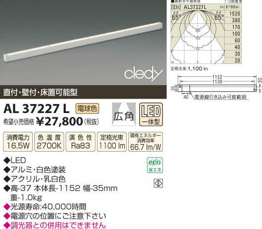 ¥³¥¤¥º¥ß¾ÈÌÀ KOIZUMI LED´ÖÀÜÍÑÅô¶ñ AL37227L