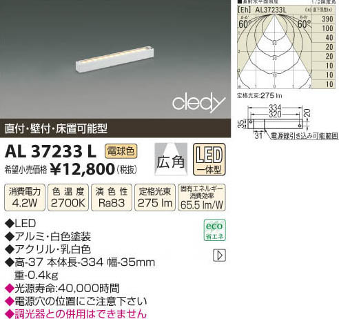 ¥³¥¤¥º¥ß¾ÈÌÀ KOIZUMI LED´ÖÀÜÍÑÅô¶ñ AL37233L