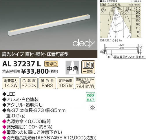 ¥³¥¤¥º¥ß¾ÈÌÀ KOIZUMI LED´ÖÀÜÍÑÅô¶ñ AL37237L