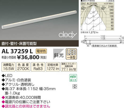 ¥³¥¤¥º¥ß¾ÈÌÀ KOIZUMI LED´ÖÀÜÍÑÅô¶ñ AL37259L