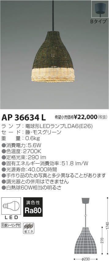 ¥³¥¤¥º¥ß¾ÈÌÀ KOIZUMI LED ¥Ú¥ó¥À¥ó¥È AP36634L
