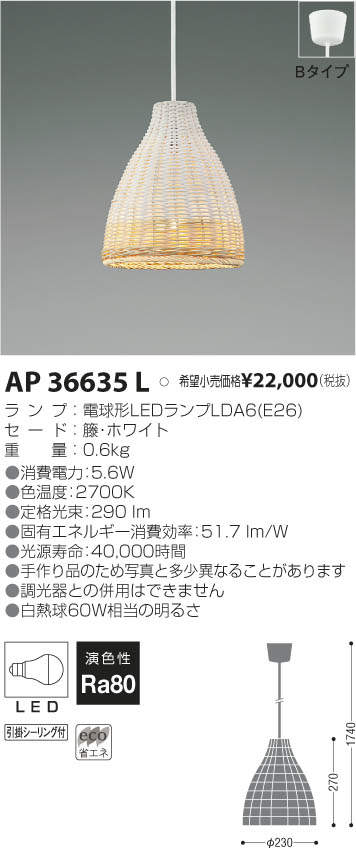 ¥³¥¤¥º¥ß¾ÈÌÀ KOIZUMI LED ¥Ú¥ó¥À¥ó¥È AP36635L