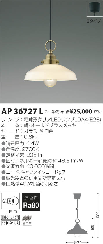 ¥³¥¤¥º¥ß¾ÈÌÀ KOIZUMI LED¥Ú¥ó¥À¥ó¥È AP36727L