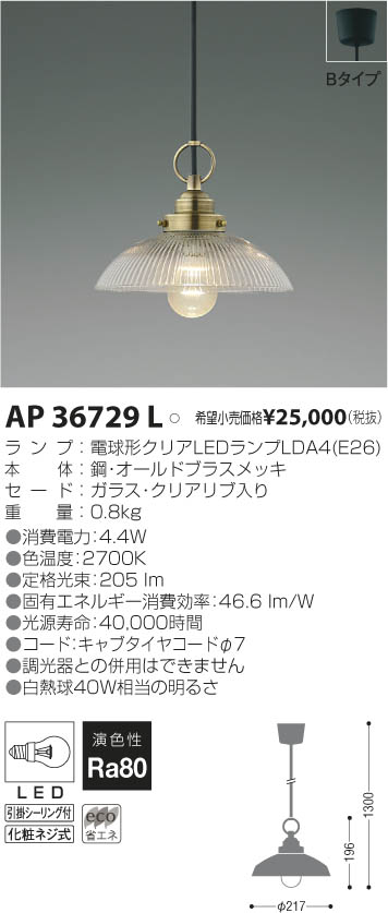 ¥³¥¤¥º¥ß¾ÈÌÀ KOIZUMI LED¥Ú¥ó¥À¥ó¥È AP36729L