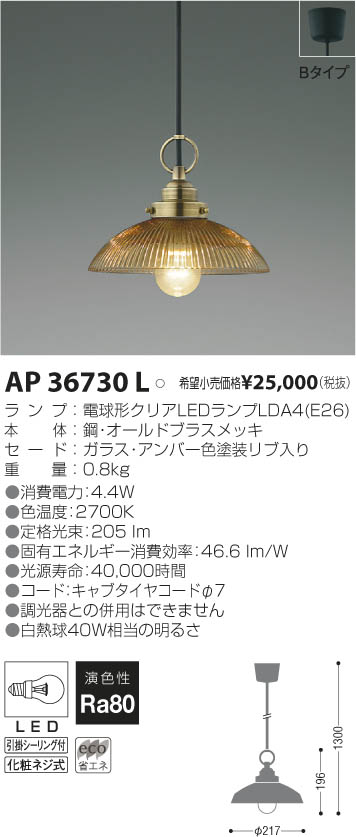 ¥³¥¤¥º¥ß¾ÈÌÀ KOIZUMI LED¥Ú¥ó¥À¥ó¥È AP36730L