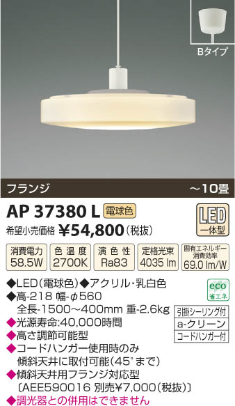 ¥³¥¤¥º¥ß¾ÈÌÀ KOIZUMI ¥Ú¥ó¥À¥ó¥È LED AP37380L