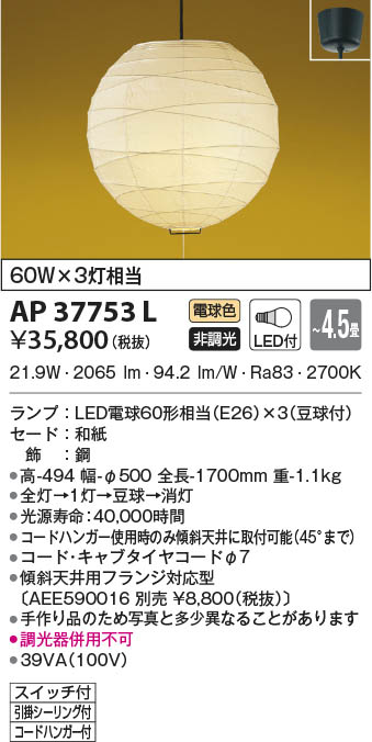 KOIZUMI ¥³¥¤¥º¥ß¾ÈÌÀ ÏÂÉ÷¥Ú¥ó¥À¥ó¥È AP37753L