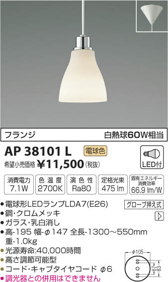 ¥³¥¤¥º¥ß¾ÈÌÀ KOIZUMI ¥Ú¥ó¥À¥ó¥È LED¡ÊÅŵ忧¡Ë AP38101L