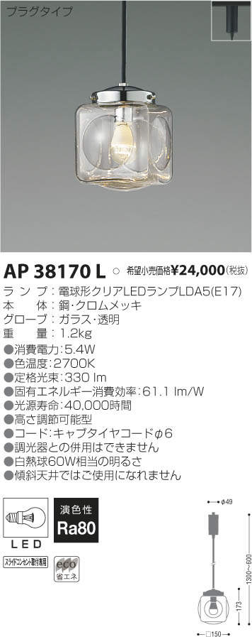 ¥³¥¤¥º¥ß¾ÈÌÀ KOIZUMI LED ¥Ú¥ó¥À¥ó¥È AP38170L