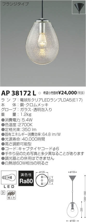 ¥³¥¤¥º¥ß¾ÈÌÀ KOIZUMI LED ¥Ú¥ó¥À¥ó¥È AP38172L
