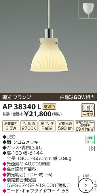 ¥³¥¤¥º¥ß¾ÈÌÀ KOIZUMI ¥Ú¥ó¥À¥ó¥È LED AP38340L