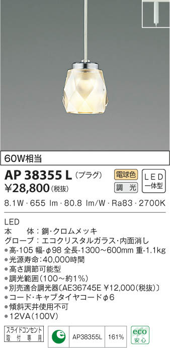 KOIZUMI ¥³¥¤¥º¥ß¾ÈÌÀ ¥Ú¥ó¥À¥ó¥È AP38355L