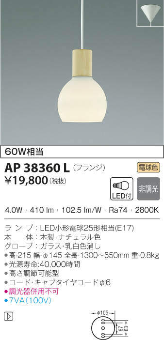 KOIZUMI ¥³¥¤¥º¥ß¾ÈÌÀ ¥Ú¥ó¥À¥ó¥È AP38360L