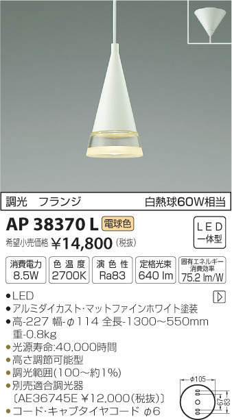 ¥³¥¤¥º¥ß¾ÈÌÀ KOIZUMI ¥Ú¥ó¥À¥ó¥È AP38370L