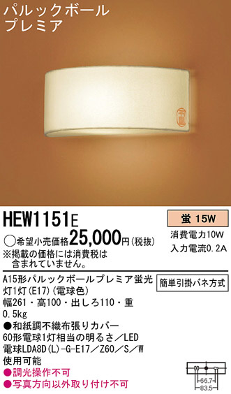 Panasonic ¥Ö¥é¥±¥Ã¥È ÏÂÉ÷¾ÈÌÀ HEW1151E