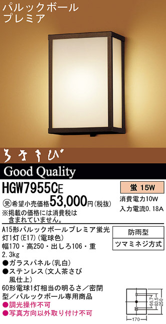 Panasonic ¥¢¥¦¥È¥É¥¢ ÏÂÉ÷¾ÈÌÀ HGW7955CE