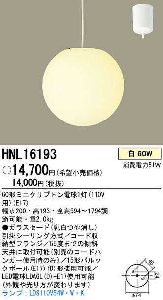 Panasonic ¥Ú¥ó¥À¥ó¥È HNL16193