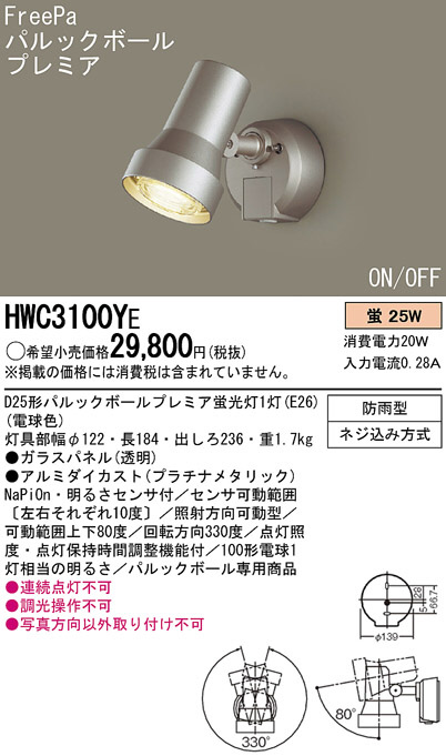 Panasonic ¥¢¥¦¥È¥É¥¢ HWC3100YE