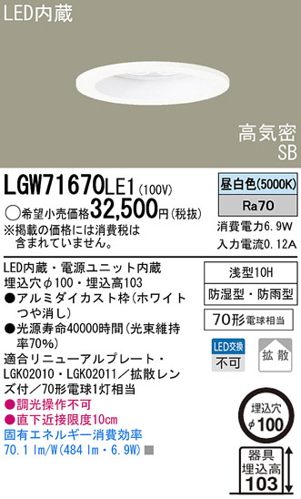 Panasonic LED ¥¢¥¦¥È¥É¥¢ ¥À¥¦¥ó¥é¥¤¥È LGW71670LE1