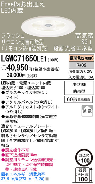 Panasonic LED ¥¢¥¦¥È¥É¥¢ ¥À¥¦¥ó¥é¥¤¥È LGWC71650LE1