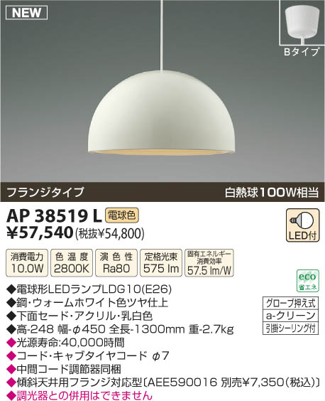 ¥³¥¤¥º¥ß¾ÈÌÀ KOIZUMI LED¥Ú¥ó¥À¥ó¥È AP38519L