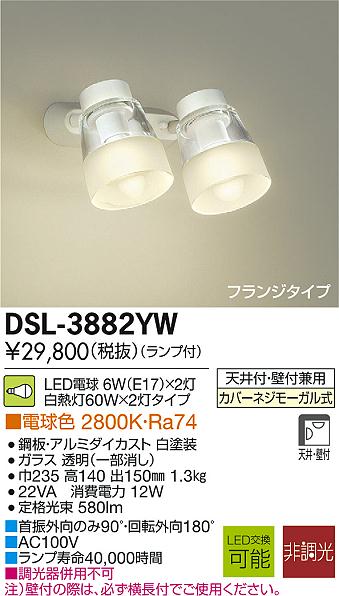 DAIKO Âç¸÷Åŵ¡ LED¥¹¥Ý¥Ã¥È¥é¥¤¥È DECOLED¡ÇS(LED¾ÈÌÀ) DSL-3882YW