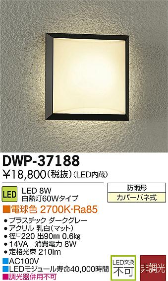 DAIKO Âç¸÷Åŵ¡ LED¥¢¥¦¥È¥É¥¢¥é¥¤¥È DECOLED¡ÇS(LED¾ÈÌÀ) ¥Ö¥é¥±¥Ã¥È DWP-37188