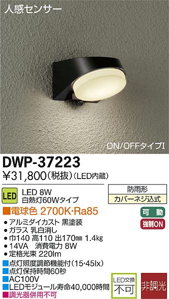 DAIKO Âç¸÷Åŵ¡ ¿Í´¶¥»¥ó¥µ¡¼ÉÕLED¥¢¥¦¥È¥É¥¢¥é¥¤¥È DECOLED¡ÇS(LED¾ÈÌÀ) ¥Ö¥é¥±¥Ã¥È DWP-37223