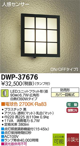 DAIKO Âç¸÷Åŵ¡ ¿Í´¶¥»¥ó¥µ¡¼ÉÕLED¥¢¥¦¥È¥É¥¢¥é¥¤¥È DECOLED¡ÇS(LED¾ÈÌÀ) ¥Ö¥é¥±¥Ã¥È DWP-37676