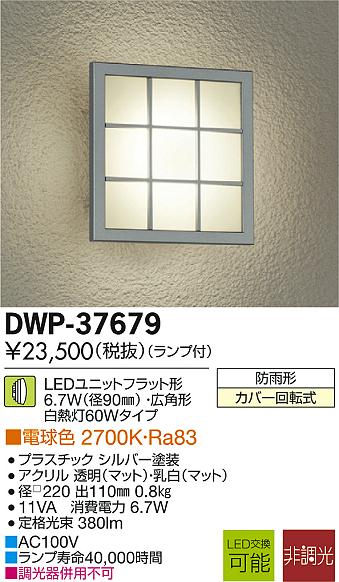 DAIKO Âç¸÷Åŵ¡ LED¥¢¥¦¥È¥É¥¢¥é¥¤¥È DECOLED¡ÇS(LED¾ÈÌÀ) ¥Ö¥é¥±¥Ã¥È DWP-37679