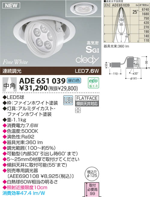 KOIZUMI LED¹âµ¤Ì©¥æ¥Ë¥Ð¡¼¥µ¥ë¥À¥¦¥ó¥é¥¤¥È ADE651039