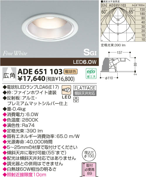 KOIZUMI LED SG·Á¥À¥¦¥ó¥é¥¤¥È ADE651103