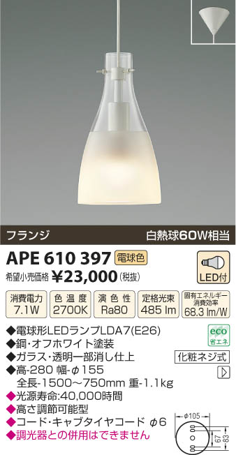 ¥³¥¤¥º¥ß¾ÈÌÀ KOIZUMI ¥Ú¥ó¥À¥ó¥È LED APE610397