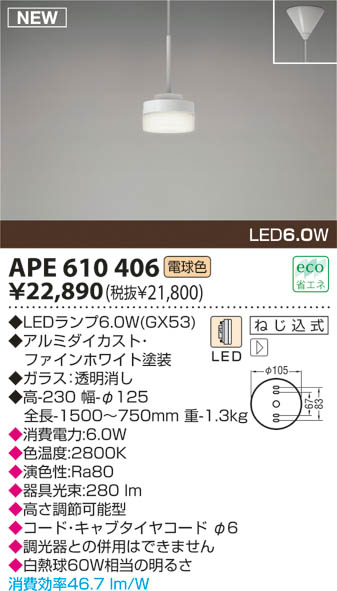 KOIZUMI LED¥Ú¥ó¥À¥ó¥È APE610406