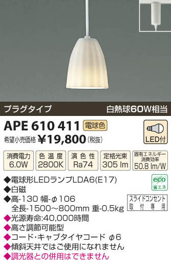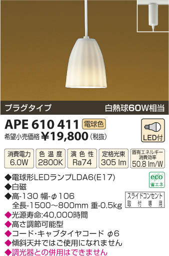 ¥³¥¤¥º¥ß¾ÈÌÀ KOIZUMI LEDÏÂÉ÷¥Ú¥ó¥À¥ó¥È APE610411