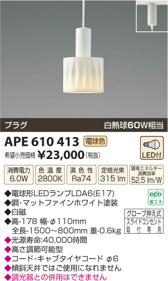 ¥³¥¤¥º¥ß¾ÈÌÀ KOIZUMI ¥Ú¥ó¥À¥ó¥È LED APE610413