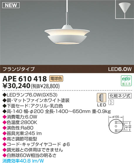 KOIZUMI LED¥Ú¥ó¥À¥ó¥È APE610418