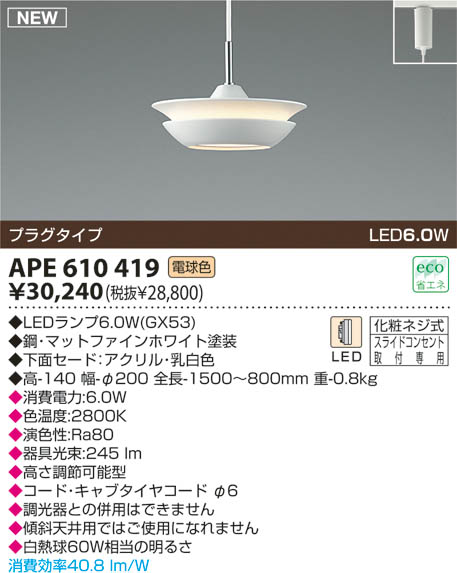 KOIZUMI LED¥Ú¥ó¥À¥ó¥È APE610419