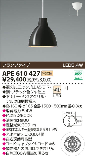 KOIZUMI LED¥Ú¥ó¥À¥ó¥È APE610427