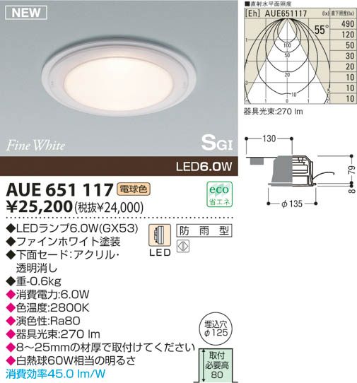 KOIZUMI LED Ëɱ«·¿SG·Á¥À¥¦¥ó¥é¥¤¥È AUE651117