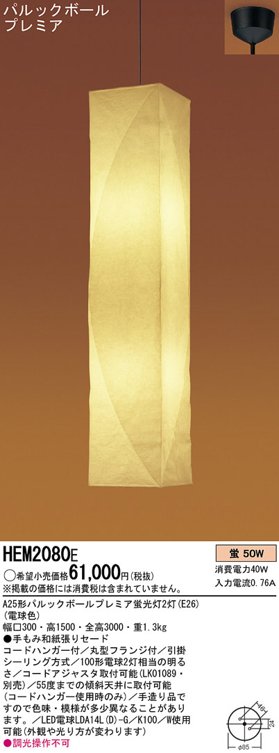 Panasonic ¥Ú¥ó¥À¥ó¥È ÏÂÉ÷¾ÈÌÀ HEM2080E