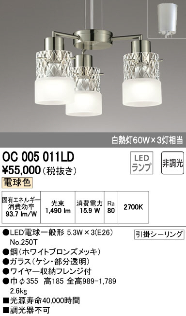 ODELIC ¥ª¡¼¥Ç¥ê¥Ã¥¯ ¥·¥ã¥ó¥Ç¥ê¥¢ OC005011LD