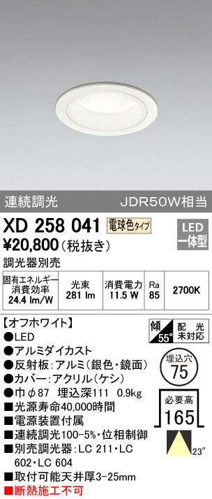 ODELIC ¥ª¡¼¥Ç¥ê¥Ã¥¯ ¥À¥¦¥ó¥é¥¤¥È XD258041