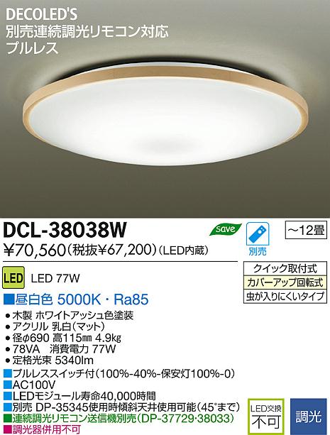 DAIKO Âç¸÷Åŵ¡ LED DECOLED¡ÇS(LED¾ÈÌÀ) ¥·¡¼¥ê¥ó¥° DCL-38038W