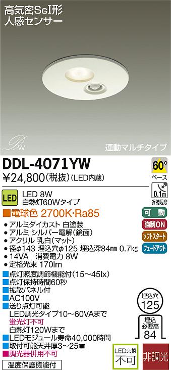 DAIKO Âç¸÷Åŵ¡ ¿Í´¶¥»¥ó¥µ¡¼ÉÕLED¥À¥¦¥ó¥é¥¤¥È DECOLED¡ÇS(LED¾ÈÌÀ) DDL-4071YW