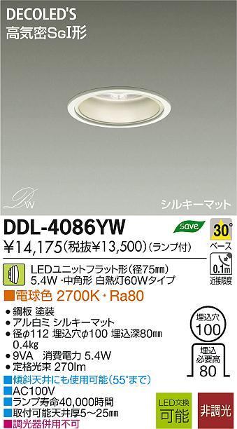 DAIKO Âç¸÷Åŵ¡ LED DECOLED¡ÇS(LED¾ÈÌÀ) ¥À¥¦¥ó¥é¥¤¥È DDL-4086YW